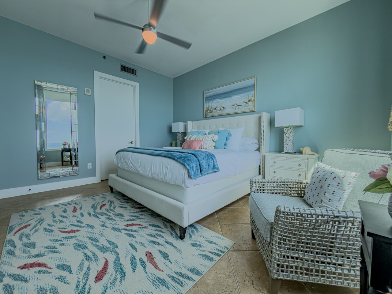 August 2025 5.00Stunning, well done to every last detail! Master bedroom bed was so comfy( only two of us but enjoyed the spacious condo), kitchen had everything we needed, beautiful dishes and glassware, drinkware for the beach, spices, snacks upon arrival, and two types of coffee makers.Over-sized beach towels, beach toys, boogie boards, wagon, bathroom shower and bath supplies! Views on both sides were amazing! Host was very quick to respond with any questions we had (which were not many) everything was very well laid out and thoughtful. Beautiful decor… We didn’t want to leave! Can’t wait to come back again! We loved 2503! ☀️🏝️⛱️
